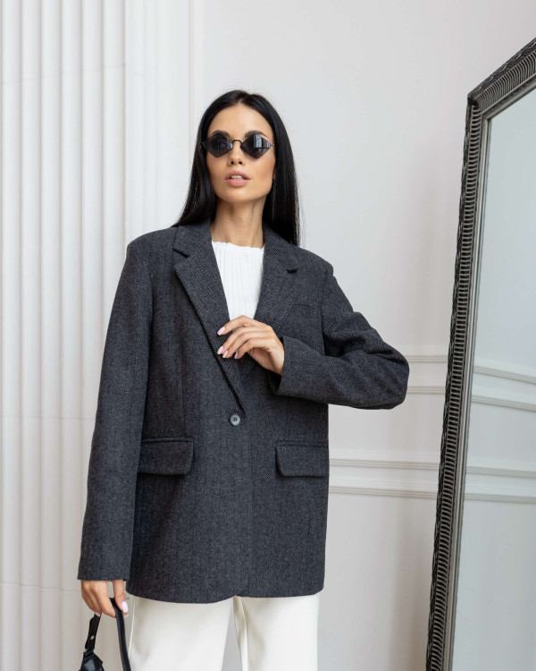 A women’s cashmere jacket in a graphite shade created for comfort and inner balance in the rhythm of modern life.